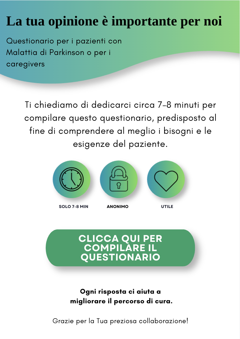 Stai leggendo: Parkinson.it > Blog > Notizie > COMPILA IL QUESTIONARIO – La tua opinione per noi è importante!